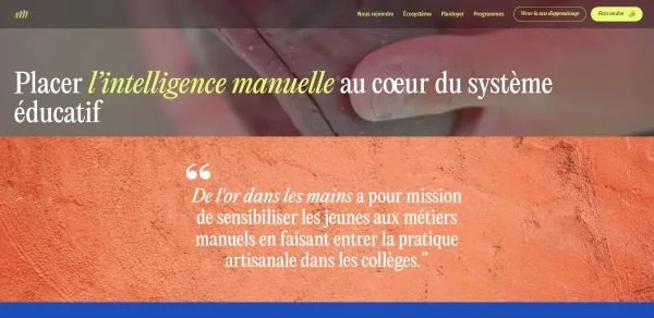 L’objectif de De l’or dans les mains est clair : remettre le travail manuel au cœur du système éducatif. L’association conçoit des programmes pour les collèges, où des artisans accompagnent les élèves dans la réalisation d’objets en lien avec leurs cours. Plus de 5 000 collégiens ont déjà participé à ces ateliers, et près de 200 établissements attendent désormais de pouvoir les accueillir.